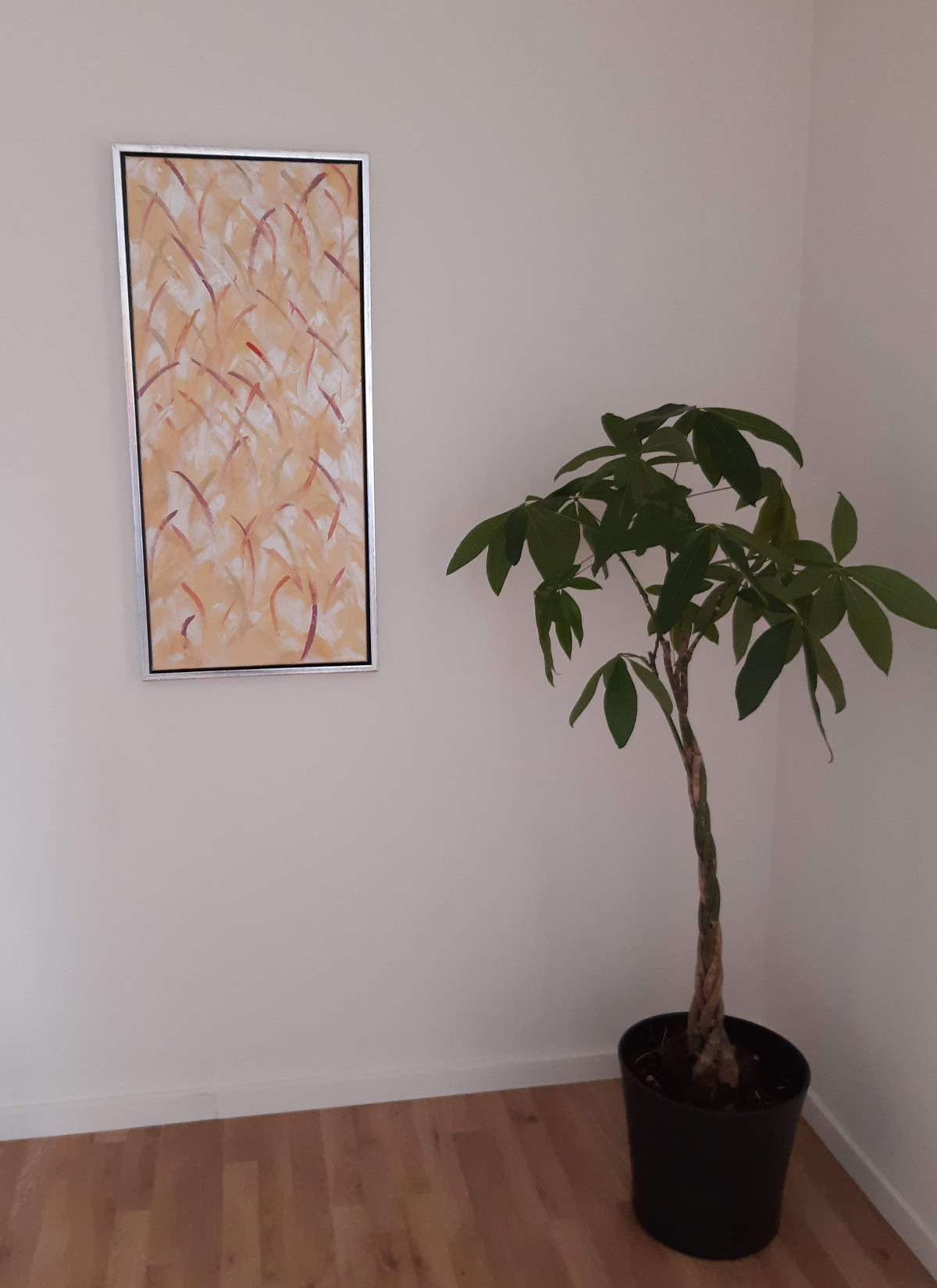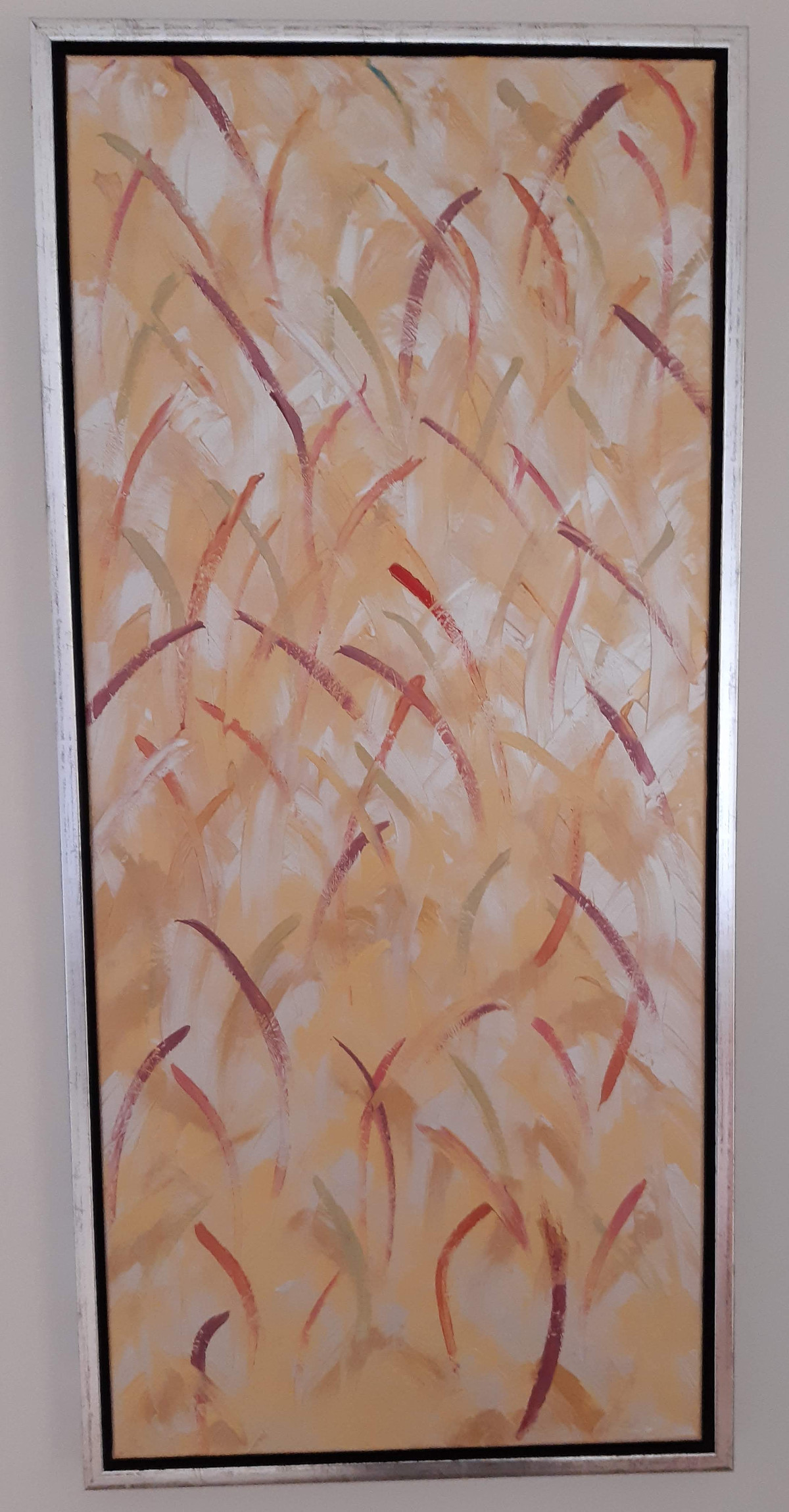Kornmark på Lolland en tidlig morgen i juni. Malet af Dina i 2018.