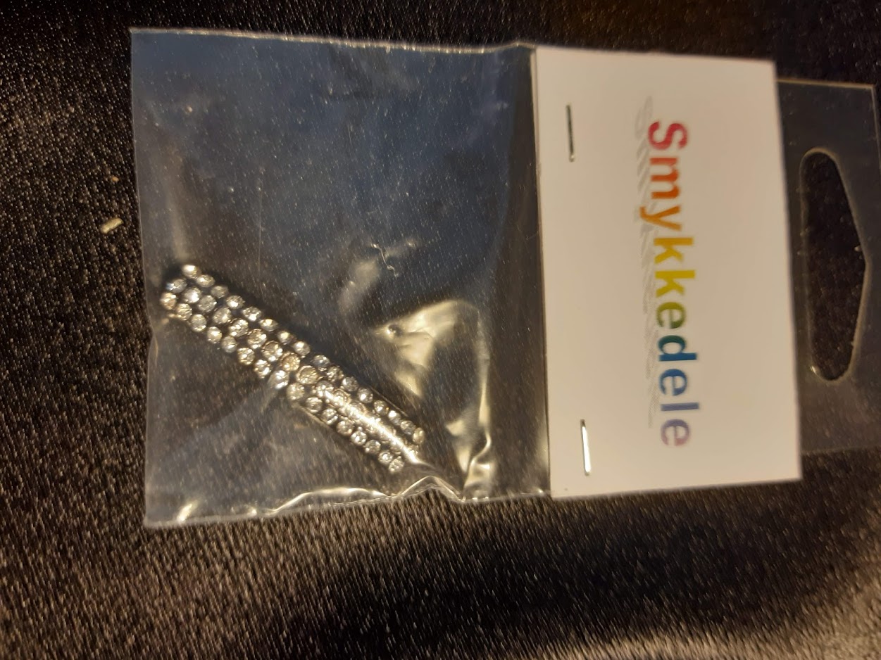 Flot metalperle i sølvlook, med flokke glinsende sten