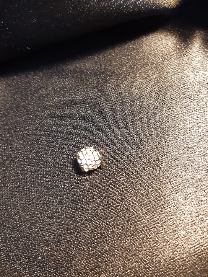 Flot metalperle i sølvlook, med flotte glinsende sten
